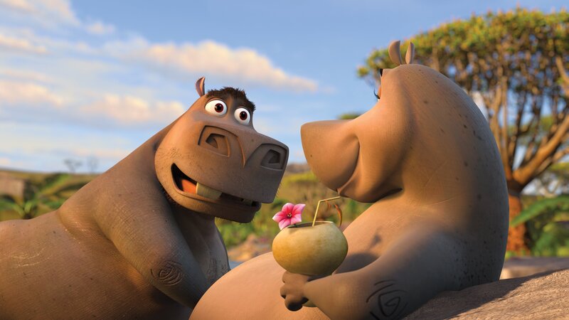 Nilpferd Gloria (l.) und Giraffe Melman (r.), wollen mit ihren Freunden Alex und Marty Madagascar verlassen und wieder nach New York in ihren Zoo zurückkehren. Dafür reparieren sie an abgestürztes Flugzeug. Doch es kommt ganz anders als geplant ...Bild: © DREAMWORKS ANIMATION LLC.