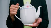 Petra Landers mit der Teekanne aus dem Tafelservice – der Prämie für den EM-Sieg 1989.Bild: © rbb/DOCDAYS