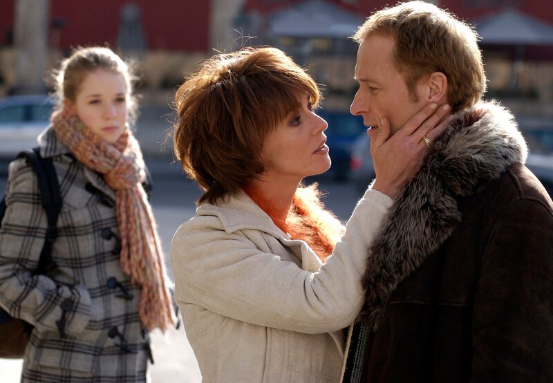 Lockvogel Barbara (Maruschka Detmers) hat sich hoffnungslos in den Heiratsschwindler Sebastian (Markus Knüfken), der auch der Vater der jungen Julia (Josefina Vilsmaier, hinten) ist, verliebt.