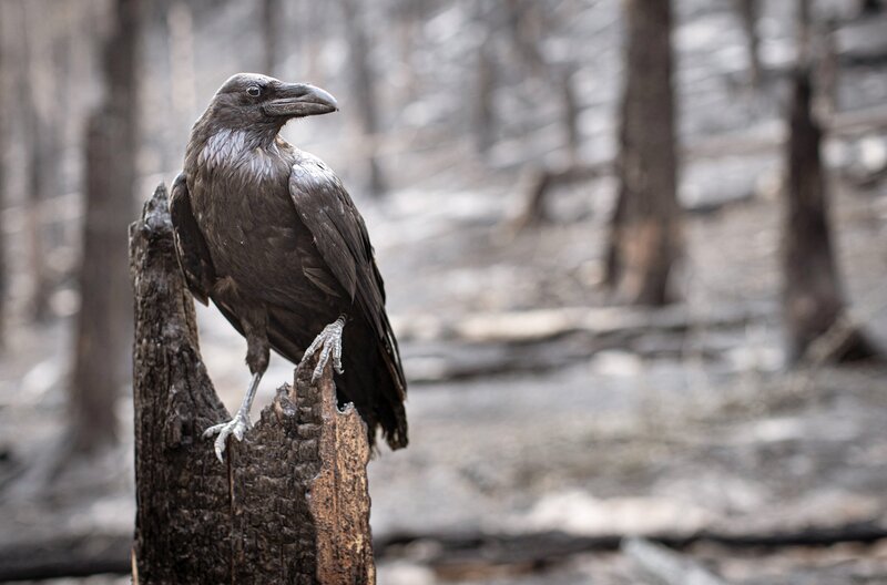 Im Film führt der Rabe die apokalytische Welt nach dem Waldbrand.Bild: © NDR/Science Vision