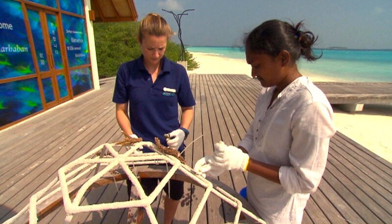 Die Malediven sind für viele Menschen ein Sehnsuchtsziel - ein Symbol für exotische Südseeromantik. Doch während sich die meist wohlhabenden Gäste aus aller Welt in rund hundert Luxusressorts verwöhnen lassen, lebt die einheimische Bevölkerung getrennt von den Touristen auf eigenen Inseln unter einfachsten Bedingungen. Einer türkisschimmernden Perlenkette gleich erstrecken sich 1.196 Inseln mitten im Indischen Ozean über eine Meeresfläche von der Größe Portugals. Knapp eine Million Touristen zieht es jährlich in diese paradiesische Traumkulisse. Doch während sich die meist wohlhabenden Gäste aus aller Welt in rund hundert Luxusressorts verwöhnen lassen, lebt die einheimische Bevölkerung getrennt von den Touristen auf eigenen Inseln unter einfachsten Bedingungen. Die Malediven sind inzwischen voller Widersprüche aus Tradition und Moderne, Alkoholverbot und Cocktailgelagen, Naturschutz und Umweltbelastung. Der Inselstaat steht vor seinen größten Herausforderungen. Die 22-jährige Sama lebt sehr gerne in beiden Welten. Sie arbeitet in einem der weltweit teuersten Fünfsternehotels als Kindergärtnerin. Samas Heimatinsel Kamadhoo ist nur einen Kilometer entfernt. Jeden Nachmittag fährt sie mit dem Wassertaxi des Hotels nach Hause zu ihren Eltern. Ihr Vater ist schwer krank und benötigt dringend eine Nierentransplantation. Ihren gesamten monatlichen Lohn von 250 Dollar spart Sama für die teure Operation. Für die Touristen in den sündhaft teuren Luxusressorts wird sich nach Meinung des deutschen Hotelmanagers Carsten Schieck trotz aller Widersprüche nichts ändern. Alkohol- und Wellnessverbote - von streng islamischen Politikern immer wieder gefordert - lassen sich nicht durchsetzen. Zu groß ist der Profit, die Malediven leben zu 95 Prozent von den Einkünften aus dem Tourismus. Knapp einen Meter liegen die Inseln im Durchschnitt über dem Meeresspiegel. Steigt das Wasser in Folge der globalen Klimaerwärmung weiter an, könnten die Malediven als eines der ersten Länder der Welt im Meer versinken. Noch sieht Meeresbiologin Shafiya Naeem dieser Bedrohung gelassen entgegen, denn ein Großteil der Korallenbänke an den Riffen ist gesund und wächst mit dem ansteigenden Meeresspiegel. "Die Riffe sind die natürlichen Schutzbarrieren unseres Landes. Ohne sie sind wir den Wellen des offenen Meeres hilflos ausgeliefert." Deswegen arbeitet sie zusammen mit anderen Forschern im Baa-Atoll an der Züchtung besonders widerstandsfähiger Korallen.
