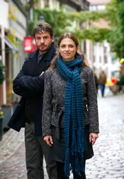 Die Relocation-Spezialistin Lina Baumann (Julia Brendler) soll Prof. Markus Gärtner (Stephan Luca) den Umzug nach Freiburg erleichtern.Bild: © SWR/Degeto/Erika Hauri