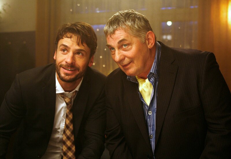 Der bodenständige Millionär Hofmeister (Heinz Hoenig, re.) ist ganz bezaubert von Markus' (Stephan Luca) vermeintlicher Ehefrau.Bild: © ARD Degeto/Erika Hauri