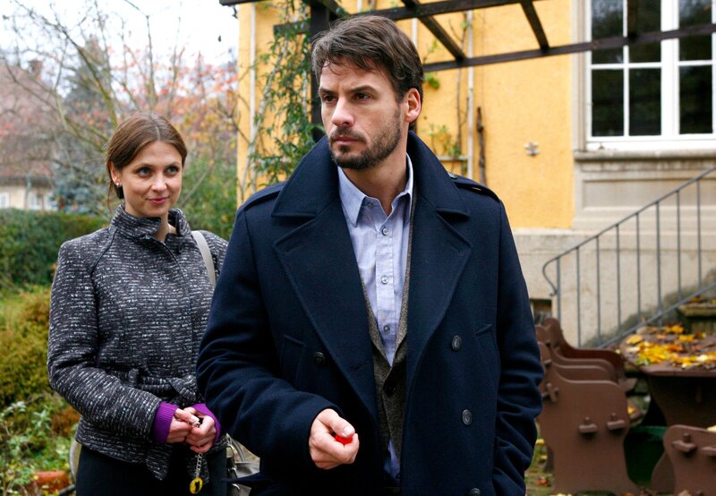 Obwohl die gut gelaunte Lina (Julia Brendler) ihm die schönsten Wohnungen anbietet, gibt Prof. Markus Gärtner (Stephan Luca) sich grantig.Bild: © ARD Degeto/Erika Hauri