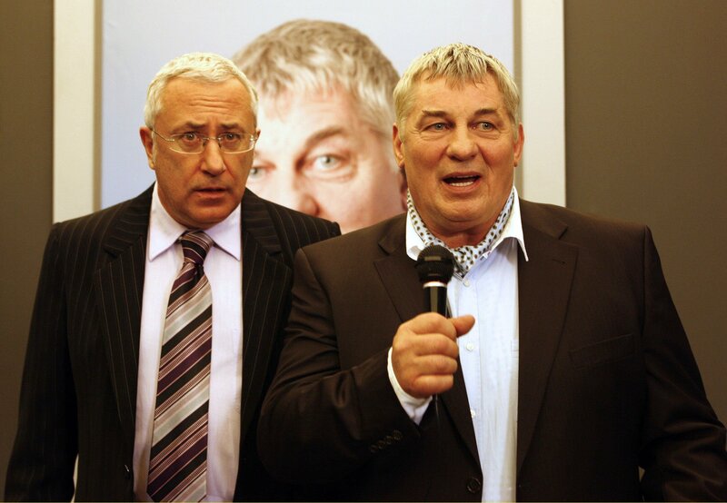 Klinikchef Prof. Weissing (Robert Giggenbach, li.) hofft, dass bei der großen Sponsorenveranstaltung mit dem Millionär Hofmeister (Heinz Hoenig) nicht doch noch etwas schief geht.Bild: © SWR/Degeto/Erika Hauri