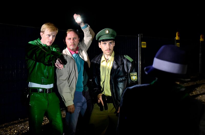 Franz Brunner (David Zimmerschied, li.), Jürgen (Alexander Held) und Michi (Matthias Ransberger, re.) im Einsatz.Bild: © ARD Degeto/Goldkind/Jürgen Olczyk