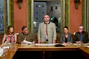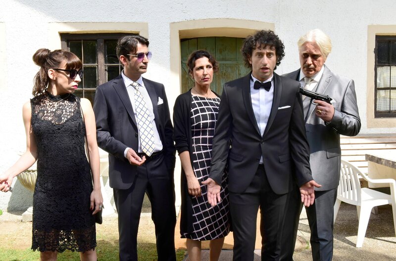 Silvio (Tommaso Ragno, re.) will seinen Sohn Rocco (Serkan Kaya, vorne) zur Hochzeit zwingen. Ehefrau Marcella (Antonella Attili), Tochter Rita (Carol Schuler, li.) und Salvatore (Michele Cuciuffo) geleiten den „Patrone“.Bild: © ARD Degeto/Goldkind/Jürgen Olczyk