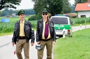 Polizeichef Moosandl (Alexander Held) und Michi (Matthias Ransberger) stoppen die schießwütige Frau Pavlovic (Barbara De Koy).Bild: © ARD Degeto/Goldkind/Jürgen Olczyk