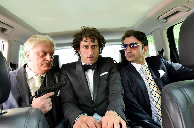 Silvio (Tommaso Ragno, links) und Salvatore (Michele Cuciuffo) „geleiten“ Rocco (Serkan Kaya, Mitte) zur Hochzeit.Bild: © ARD Degeto/Goldkind/Jürgen Olczyk
