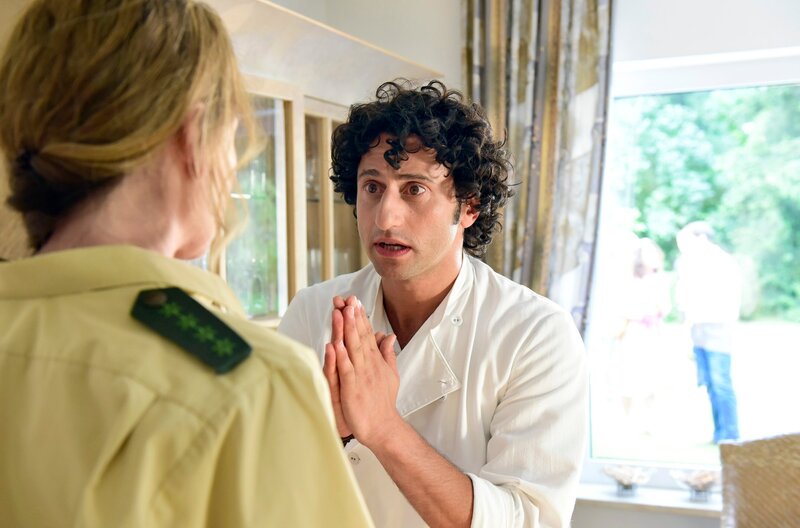 Rocco (Serkan Kaya) hat Maria Moosandl (Lisa Maria Potthoff) etwas mitzuteilen.Bild: © ARD Degeto/Goldkind/Jürgen Olczyk