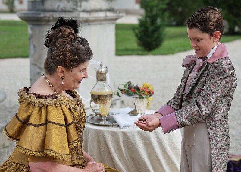 Charlotte von Rothschild (Brigitte Hannak) mit ihrem Sohn Albert Rothschild (Luca Himburg), der einmal als reichster Mensch Europas gelten würde.Bild: © ORF/Metafilm/Helmut Wimmer