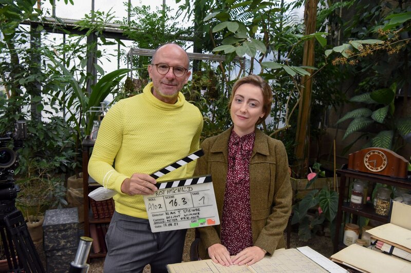 Regisseur Klaus T. Steindl, Alina Fritsch (als Miriam Rothschild).Bild: © ORF/Hubert Mican