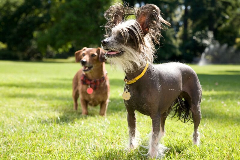 Als Marmaduke (l.) in Kalifornien die bezaubernde Collie-Dame Beverly (r.) und ihre versnobten schicken Freunde aus der Schicki-Micki-Clique kennenlernt, ist es um ihn geschehen. Er spielt, um ihnen zu imponieren, den supercoolen Überflieger und setzt damit die Freundschaft zu Lucy und ihrer Gang aufs Spiel ...Bild: © ZDF