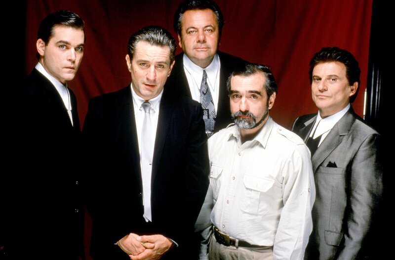 Martin Scorsese (2.v.r.) und die Besetzung von „Goodfellas“: Ray Liotta, Robert De Niro, Paul Sorvino und Joe Pesci (v.l.)Bild: © PictureLux/The Hollywood Archive/Alamy Stock Photo