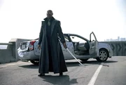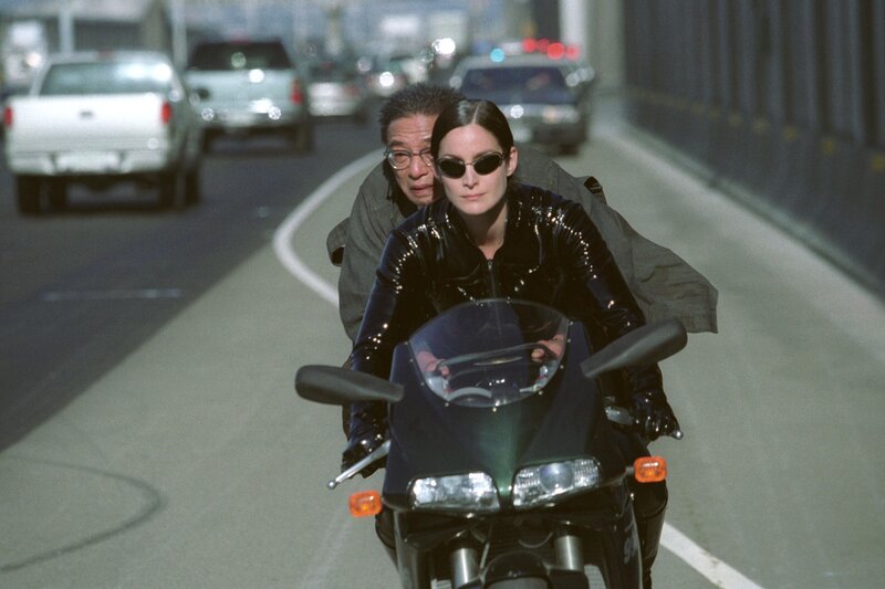Obwohl Rebellenführer Morpheus stets vor einer Fahrt auf dem Highway warnte, bleibt Trinity (Carrie-Anne Moss, vorne) keine andere Wahl, bei der Entführung des Schlüsselmachers (Randall Duk Kim, hinten) ...Bild: © TVN/Warner Bros