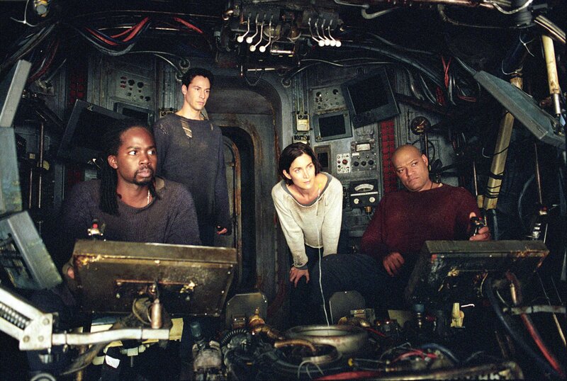 L-R: Link (Harold Perrineau jr.), Neo (Keanu Reeves), Trinity (Carrie-Anne Moss), Morpheus (Laurence Fishburne)Bild: © Warner Bros.