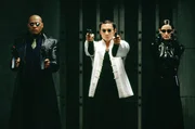 Weil Neo nach wie vor im Koma liegt, machen sich Morpheus (Laurence Fishburne, l.), Trinity (Carrie-Anne Moss, r.) und Seraph (Collin Chou, M.) auf den Weg in Merovingians Hölle, einen Nachtklub, um ihn zu befreien. Nach zähen und schlagkräftigen "Verhandlungen" wacht er aus seinem Koma auf ...Bild: © Warner Bros. Lizenzbild frei
