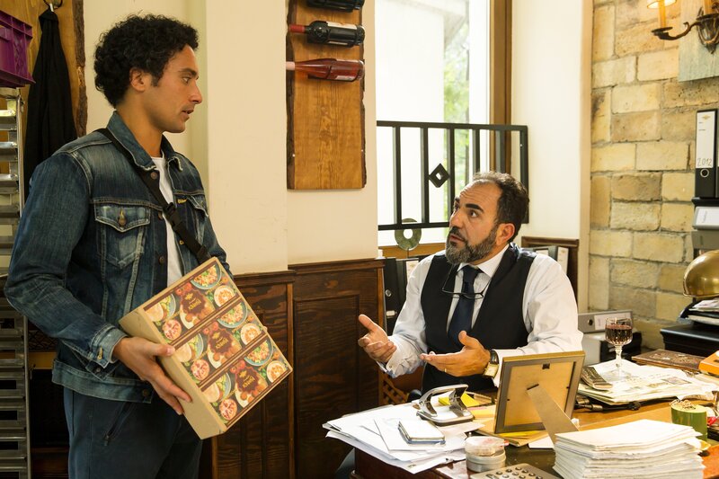 Hakim (Omar El-Saeidi) diskutiert mit seinem Vater Yussef (Adnan Maral) über die Einmischungen seiner Mutter in sein Liebesleben.Bild: © ZDF und Daniela Incoronato./Daniela Incoronato