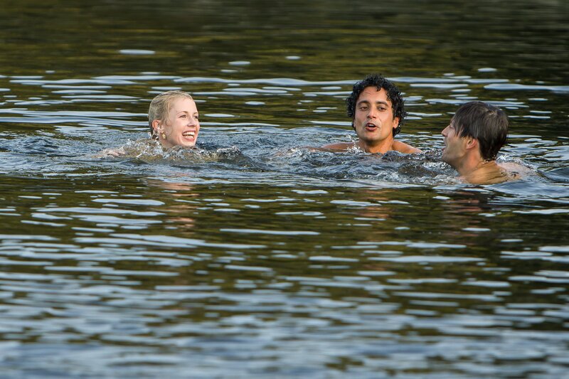 Noch hat Charlotte (Christine Eixenberger, l.) sich für keinen der Jungs entschieden. Hakim (Omar El-Saeidi, M.) und Noah (Franz Dinda, r.) geben alles um ihr zu gefallen.Bild: © Daniela Incoronato / ZDF