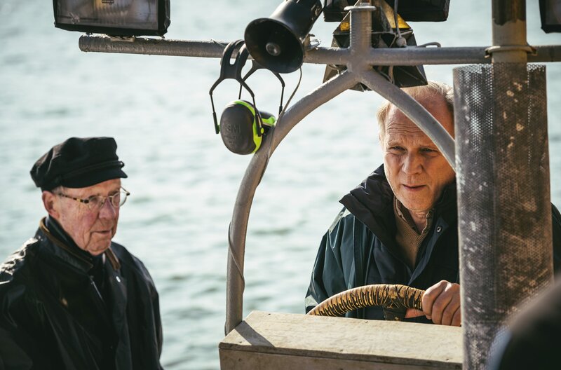 Freunden sich schnell an: der streitbare, rüstige Kauz Max (Hans-Peter Korff, l.), den es aus Gründen, die er nicht erzählen möchte, nach Maalsund verschlagen hat, und Thomas Wintersperger (Ulrich Tukur, r.), der in der Nähe der Absturzstelle bleiben möchte, um seiner Tochter möglichst nahe zu sein.Bild: © WDR/KJ Entertainment/Lukas Salna
