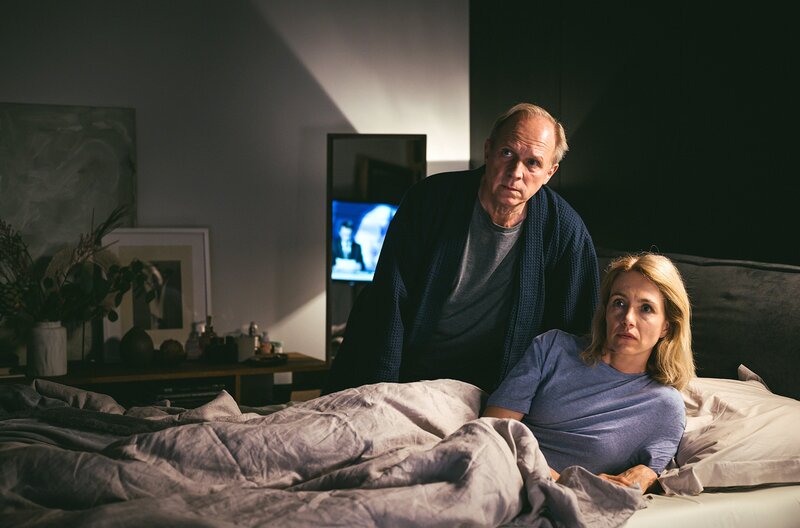 Ein letztes Bangen: Kann es sein, dass seine Tochter vielleicht doch nicht unter den Passagieren des abgestürzten Flugzeuges war? Sonja Wintersperger (Ursina Lardi, r.) und Thomas Wintersperger (Ulrich Tukur, l.).Bild: © WDR/KJ Entertainment/Lukas Salna
