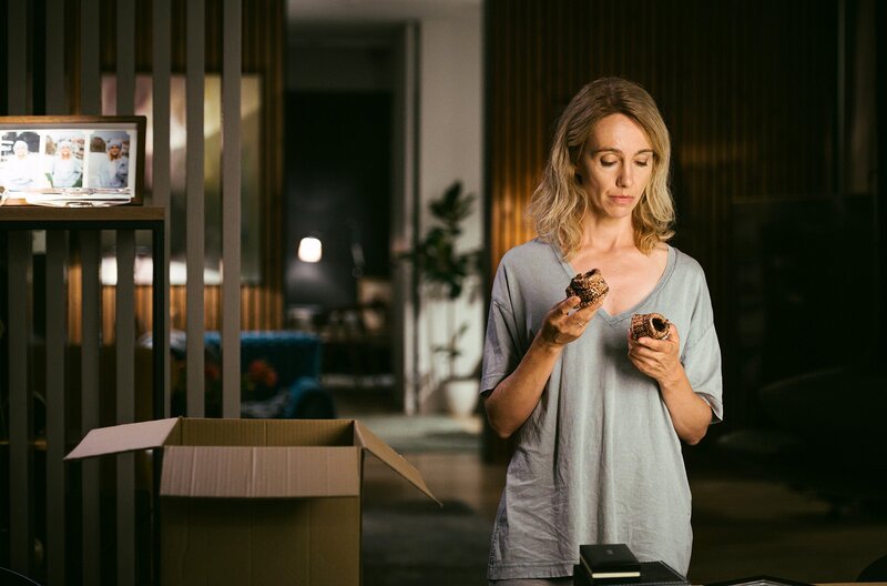 In tiefer Trauer und Fassungslosigkeit: Sonja Wintersperger (Ursina Lardi), die mit ihrer neuen Situation zurechtkommen muss. Ihr Mann Thomas (Ulrich Tukur) hat sich zunächst an die Ostsee verabschiedet, ihre gemeinsame Tochter kam bei einem Flugzeugabsturz über der Ostsee ums Leben.Bild: © WDR/KJ Entertainment/Lukas Salna