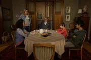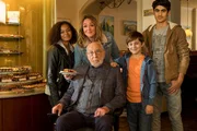 Hintz (Dieter Hallervorden, M.) ist überrumpelt von Trixies (Alwara Höfels, 2.v.l.) Einzug in seine Wohnung. Noch schlimmer sind für ihn ihre drei Kinder Afia (Latisha Kohrs, l.), Sean (Lior Kudrjawizki, 2.v.r.) und Murat (Julius Gabriel Göze, r.).Bild: © Conny Klein / ZDF
