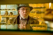 Hintz (Dieter Hallervorden) beim schlecht gelaunten Einkauf seines geliebten Kirschstreusels.Bild: © 3sat