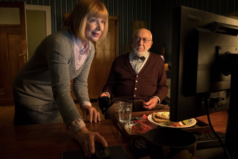 Elfie (Ursela Monn) erklärt ihrem Bruder Hintz (Dieter Hallervorden), dass sie online nach einer Haushaltshilfe für ihn gesucht hat, und dass diese Person noch dazu bei ihm einziehen wird.Bild: © Conny Klein / ZDF