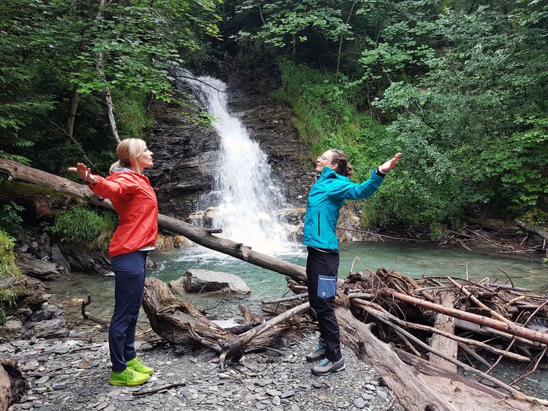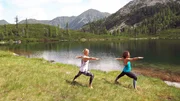 Marlies Raich mit Sandra König beim Yoga am Reedsee im Gasteinertal.Bild: © ORF