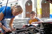 Ellen (Anica Dobra, l.) versucht einen Keilriemen auszutauschen. Franz (Joel Basman, r.) sieht seine Mutter eigentlich eher selten. Nach der Scheidung von ihrem Mann muss sie im Krankenhaus so viele Doppelschichten wie möglich schieben, da sie einen Berg von Schulden abzutragen hat ...