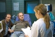Wolfi (Martin Brambach, l.) bringt seinen Freund Carlo (Uwe Ochsenknecht, M.) mit starken Herzschmerzen ins Krankenhaus. Dort wird Carlo von Ellen (Anica Dobra, r.) untersucht.