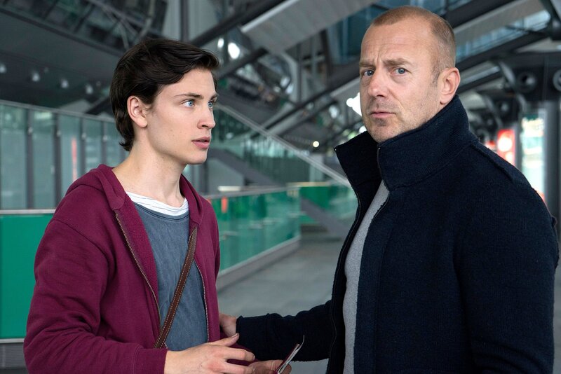 Tobias Wilke (Heino Ferch, re.) verabschiedet seinen Sohn Finn (Jannik Schümann) am Flughafen, der für ein Austauschjahr nach Amerika fliegt.Bild: © ARD Degeto/Britta Krehl