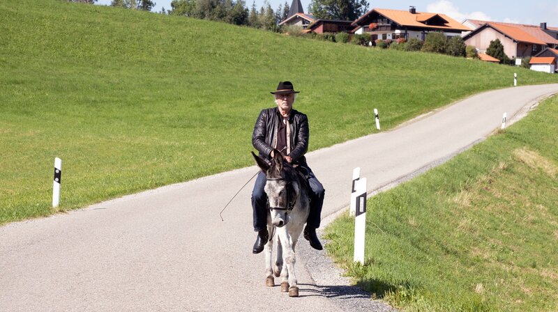 Hartmut „Bonanza“ Zeller hat den Esel Franz "geparkt".Bild: © ARD Degeto/Kerstin Stelter