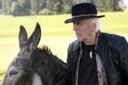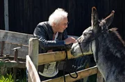 Hartmut „Bonanza“ Zeller (Günther Maria Halmer) freut sich über die Gesellschaft von dem Esel Franz.Bild: © ARD Degeto/Kerstin Stelter
