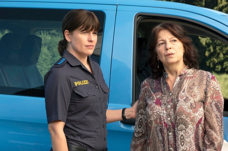 Landpolizistin Tinka (Isabell Polak, re.) hält das Auto von ihrem Vater Hartmut (Günther Maria Halmer, li.) an.Bild: © ARD Degeto/Kerstin Stelter