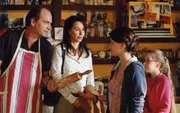 Als ihr Vater (Herbert Knaup, l.) Bens Mutter Anna (Katharina Müller-Elmau, 2.v.l.) kennen lernt, vergeht April (Sidney Gersina, 2.v.r.) und ihrer kleinen Schwester Mücke (Josefina Vilsmaier, l.) erst einmal das Lachen ...Bild: © ProSieben / Christian A. Rieger