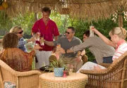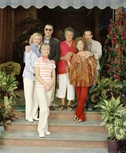 Pam (Teri Polo, r.) und Greg (Ben Stiller, 2.v.l.) machen sich zusammen mit Pams Eltern (Robert De Niro, 2.v.r., Blythe Danner, 3.v.r.) auf den Weg nach Miami, um Gregs Eltern (Dustin Hoffman, l.) kennenzulernen. Keine besonders gute Idee ...