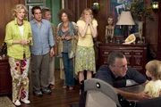 Greg (Ben Stiller, 2. v. li.), sein Vater Bernie (Dustin Hoffman, 3. v. li.), seine Mutter Rozalin (Barbra Streisand, stehend 2. v. re.), seine zuk¸nftige Schwiegermutter Dina (Blythe Danner, li.) und seine Braut Pam (Teri Polo) sind völlig fassungslos, als Jack (Robert De Niro, 2.v.r.) den kleinen L. J. (Spencer/Bradley Pickren) wiederfindet.