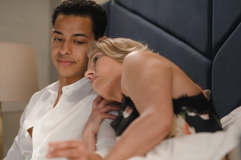 Aus der erotischen Nachhilfestunde wird zwischen Nancy (Emma Thompson) und Leo (Daryl McCormack) unversehens ein vertraut-kuscheliges Gespräch.Bild: © ZDF und Nick Wall
