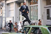 Agent J (Will Smith, r.) muss sich nach seiner Zeitreise im Jahr 1969 zurechtfinden. Er sucht seinen Partner: den jungen Agent K (Josh Brolin, l.). Doch als J versucht, ihm zu erklären, dass er aus der Zukunft kommt, lässt K ihn abblitzen.
