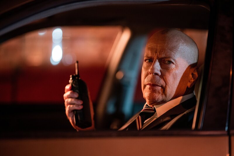 Mit einem Funkgerät in der Hand wartet FBI-Agent Karl Helter (Bruce Willis) im Auto auf Nachrichten seiner ermittelnden Kollegin Rebecca Lombardi.Bild: © Michael Moriatis / ZDF