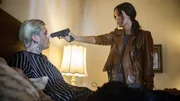 Auf der Suche nach dem Serienkiller stößt die undercover arbeitende FBI-Agentin Rebecca Lombardi (Megan Fox) in einem Motel auf den überraschten Zuhälter Calvin (Colson Baker, alias Machine Gun Kelly).Bild: © Kenneth Rexach / ZDF und Kenneth Rexach