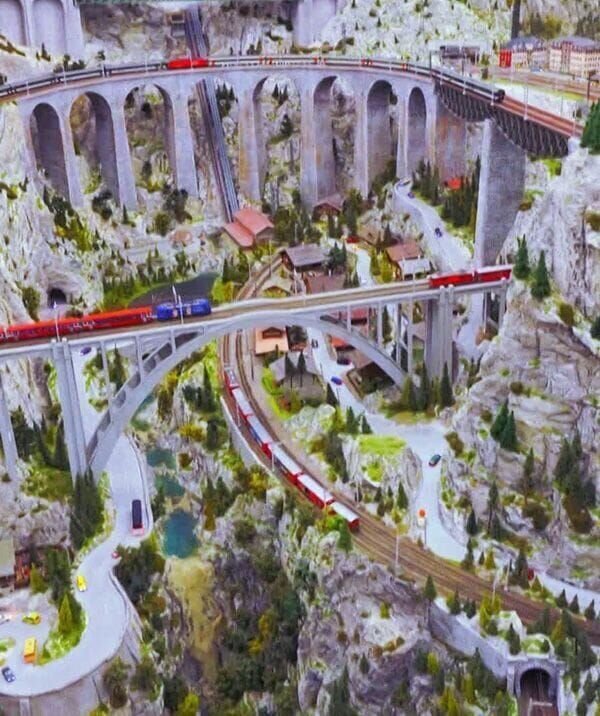 500 Züge mit 7000 Waggons auf 5000 Metern Gleisen, dazu 200 Autos in einer detailverliebten Landschaft: Seit 20 Jahren machen Gerrit und Frederik Braun ihren Jugendtraum wahr und bauen unentwegt die größte Modelleisenbahn der Welt weiter. U.a. mit St. Max. Der Ort ist dem realen Ort St. Moritz nachempfundenBild: © RTL / Miniaturwunderland Hamburg