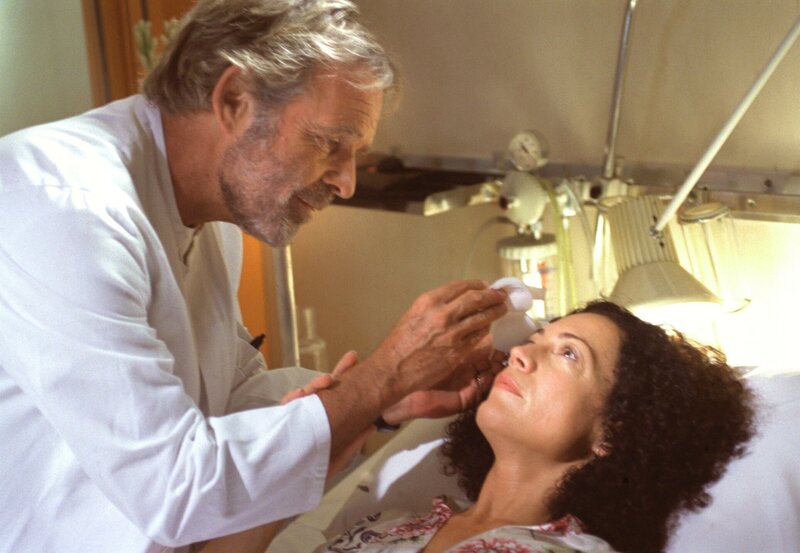 Trotz ihrer Blindheit ist die berühmte, in Venedig lebende Sängerin Sophie Martell eine lebenslustige, optimistische Frau geblieben. Allerdings freut sie es zunächst wenig, als ihr Agent David den Journalisten Eike Blohm engagiert, um Sophies Biografie schreiben zu lassen. Aber bald verliebt sich die eigenwillige Frau in ihren sensiblen Biografen. David jedoch ist von Sophies Liebesglück gar nicht begeistert: Er fürchtet, dass dadurch seine Betrügereien und die Veruntreuung von Sophies Privatvermögen auffliegen könnten. "Mit deinen Augen" erzählt eine bewegende Liebesgeschichte vor venezianischer Kulisse. Barbara Wussow und Christian Kohlund spielen die Hauptrollen. Seit ihrem zwölften Lebensjahr ist die berühmte klassische Sängerin Sophie Martell (Barbara Wussow) blind. Ihren Lebensmut lässt sich die schöne junge Frau von diesem Schicksalsschlag nicht nehmen. Sie genießt das Leben, hat eine wundervolle Wohnung in der Lagunenstadt Venedig und träumt von einer Karriere an der Oper. Dieser Traum scheint in greifbare Nähe zu rücken, als einer ihrer größten Fans, der amerikanische Augenchirurg Mac Cormick (Thomas Fritsch), Sophie anbietet, eine neue Operationsmethode an ihr auszuprobieren, mit der sie ihr Augenlicht zurückerhalten könnte. Während ihr alter Gesangslehrer Jacob (Buddy Elias) sich über diese Nachricht freut, geht Sophies aalglatter Agent David Rauch (Pierre Besson) ungerührt seinen krummen Geschäften nach: Sophie ahnt nicht, dass ihr Berater sie schamlos hintergeht, ausnutzt und ihr Privatvermögen anzapft, um seine horrenden Spielschulden zu begleichen. Als David den Hamburger Journalisten Eike Blohm (Christian Kohlund) engagiert, um Sophies Biografie schreiben zu lassen, ist die Sängerin zunächst gar nicht begeistert: Sie wollte ihre Lebensgeschichte ausschließlich einer Frau anvertrauen. Das erste Treffen mit Eike verläuft denn auch nicht sonderlich erfolgreich, weil dieser nicht weiß, wie er mit Sophies Blindheit umgehen soll. Als die selbstbewusste Sängerin und der sensible Journalist sich jedoch näher kennenlernen, dauert es nicht lange, bis es zwischen den beiden gehörig funkt. Der verlogene David beobachtet diese Entwicklung misstrauisch. Er fürchtet, durch Eikes Spürsinn könnten seine Machenschaften auffliegen, erst recht, falls Sophie durch die anstehende Operation tatsächlich ihr Augenlicht zurückbekommen sollte. Von Giovanni (Andi Slawinski), dem Sohn von Sophies Haushälterin, erfahren Eike und Sophie schließlich alles über Davids Betrügereien. Doch bevor sie mit ihm abrechnen können, steht die heikle Augenoperation an. In einer Mischung aus Furcht und Freude fiebert die junge Frau im Krankenhaus dem Moment entgegen, an dem sie ihren Verband vom Gesicht ziehen wird. Unterdessen bereitet David seine Flucht aus Venedig vor. "Mit deinen Augen" erzählt in der stimmungsvollen Atmosphäre Venedigs eine romantische Liebesgeschichte. In der Hauptrolle glänzt Barbara Wussow als Sängerin, die sich trotz eines schweren Schicksalsschlags ihre Ideale nicht nehmen lässt. Ihr zur Seite steht Christian Kohlund als sensibler Journalist mit Herz.