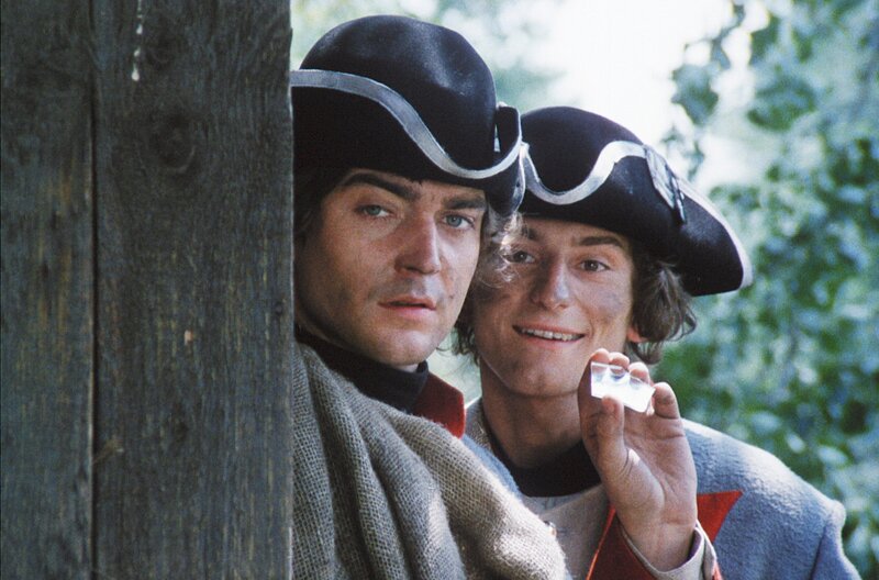 Nach einem weiteren gescheiterten Entführungsversuch lässt sich der frustrierte Teufel Janek (Ondrej Vetchý, hinten) leichtgläubig als Soldat anwerben. Bei der Armee lernt er Peter (Vladimír Dlouhý, vorn) kennen. Mit vereinten Kräften gelingt es den Beiden schließlich, Dorotka zu überlisten.