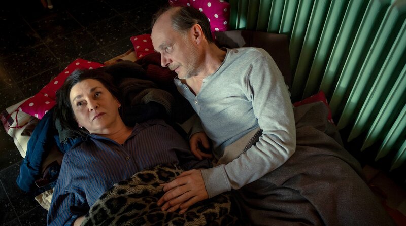 Ronnie (Martin Brambach, re.) versucht Hilde (Steffi Kühnert, li.) zu überreden, sich bei Angie und Lore zu entschuldigen.Bild: © ARD Degeto Film/Conny Klein