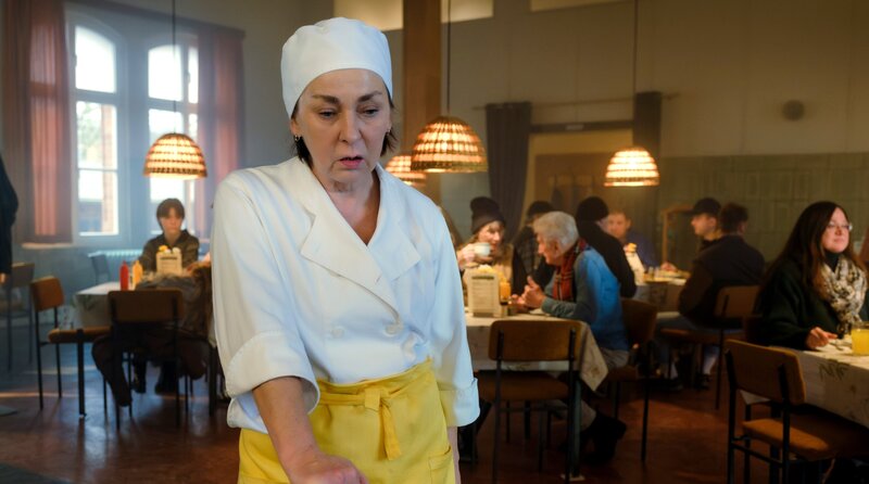 Weil Hilde (Steffi Kühnert) sich mit ihren Freundinnen verstritten hat, muss sie die Kantine allein bewirtschaften.Bild: © ARD Degeto Film/Conny Klein