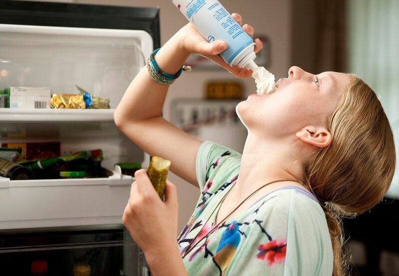 Die schwangere Mona (Stefanie Amarell) wird von Heißhungerattacken gepackt.