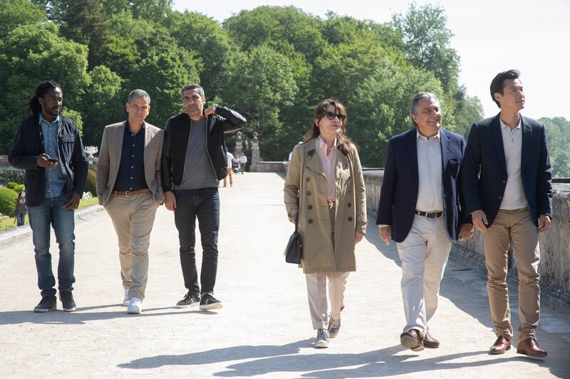 v.li.: Charles Kofi (Noom Diawara), Rachid Benassem (Medi Sadoun), David Benichou (Ary Abittan), Marie Verneuil (Chantal Lauby), Claude Verneuil (Christian Clavier), Chao Ling (Frédéric Chau)Bild: © ARNAUD_BORREL